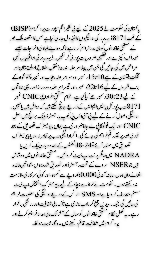December 2025 BISP Payment
