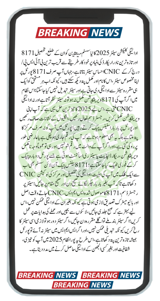 The upgraded 8171 payment collection center system for 2025 makes it easier than ever to find your correct BISP disbursement location. By entering your CNIC on the official 8171 portal, you can instantly view your assigned center, confirm your eligibility, and prepare the required documents. Completing verification and checking the portal regularly ensures a smooth payment experience. Always visit your assigned center only, as the system does not allow changes. Staying updated through the portal helps you collect your payment safely and quickly.