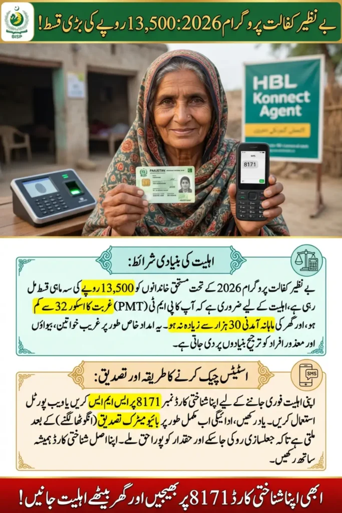 The BISP 8171 payment eligibility criteria decide whether a family qualifies for Rs.13,500 financial support under the Benazir Kafalat Program. In 2026, the government has continued digital verification and phase-wise payments across Pakistan.