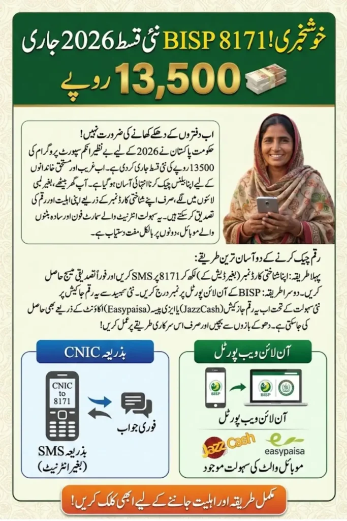 BISP 8171 Online Check Increase Balance is a simple digital service for beneficiaries in Pakistan. It helps families confirm their Rs. 13,500 installment for 2026 without visiting offices.