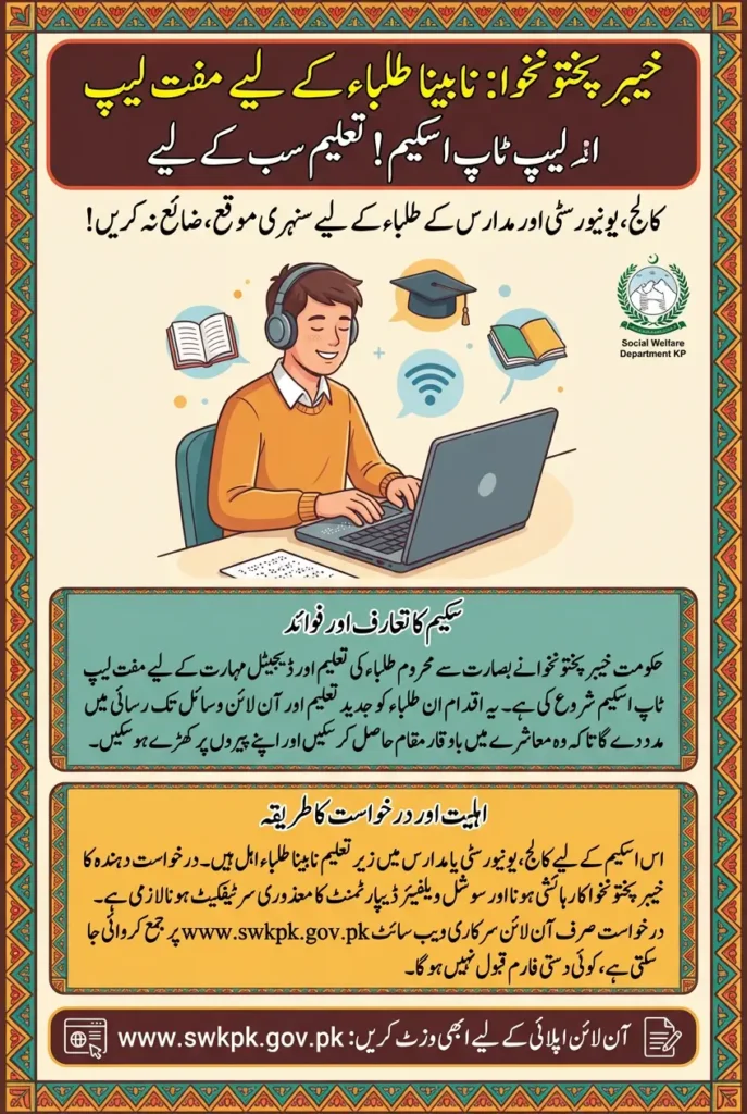 How to apply for the laptop scheme in Khyber Pakhtunkhwa: The Laptop Scheme for Visually Impaired Students in Khyber Pakhtunkhwa is a welfare-focused educational initiative aimed at supporting blind and visually impaired learners. The scheme helps students gain access to digital tools that are essential for modern education and skill development.