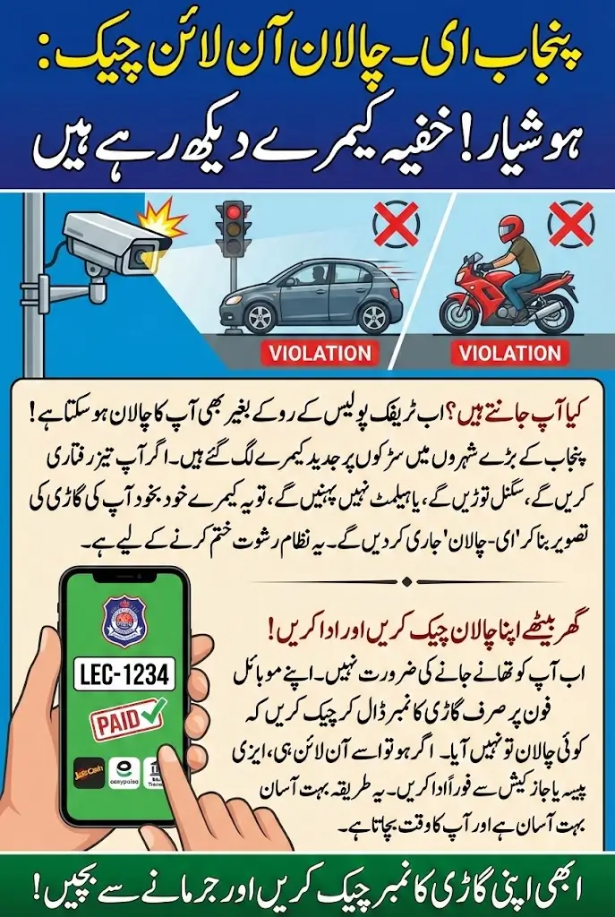 Punjab e-Challan Online Check is a modern system for managing traffic violations through technology. It is operated by the Punjab Police and the Safe City Authorities to replace manual challans. Smart cameras automatically detect violations and issue digital tickets to vehicle owners.